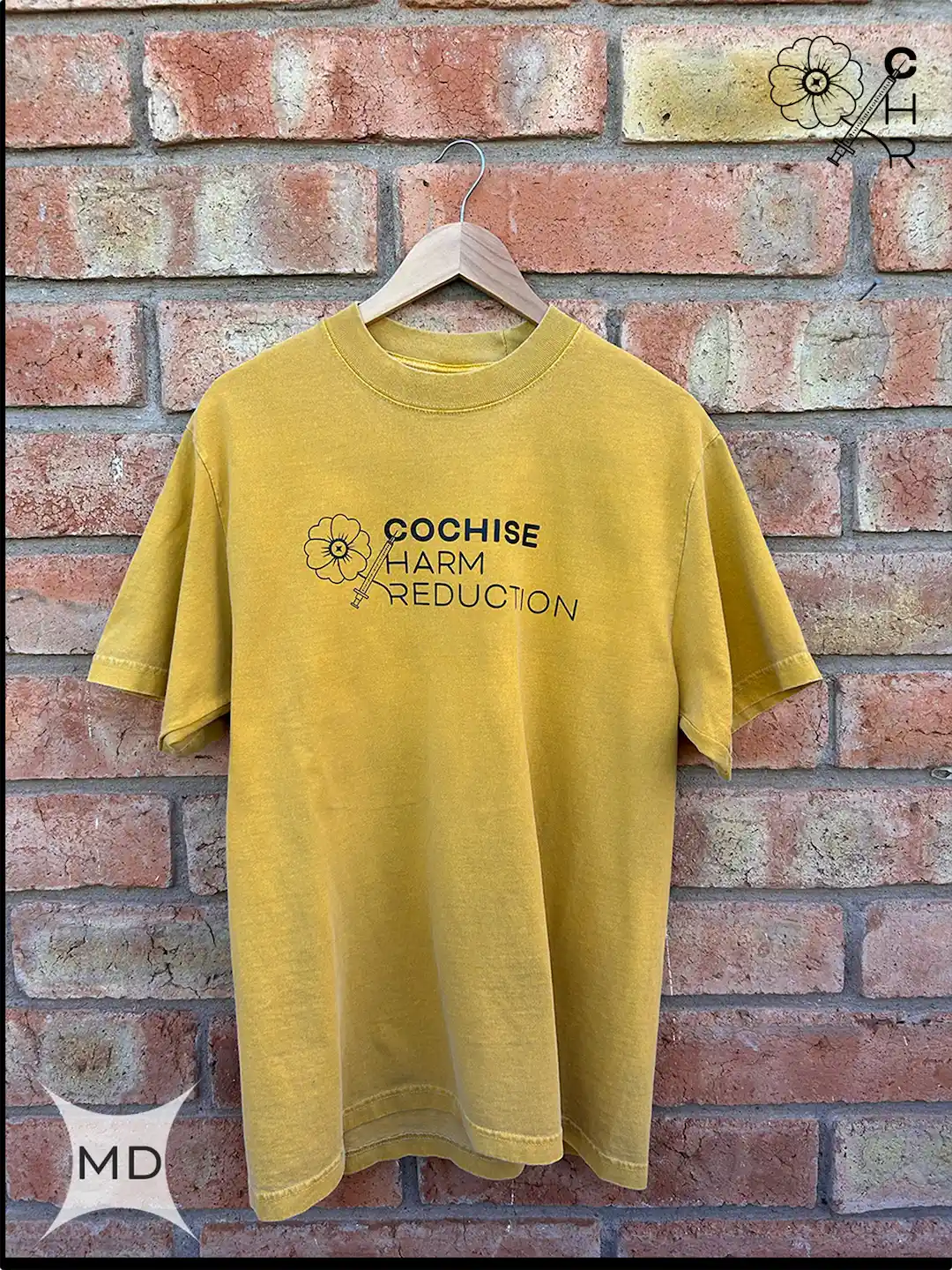 Black • Solid black • White screen printed graphic • 100% cotton, regular weight tee by Gildan • Sizes Available: S, M, L, XL, 2XL Shadow • Solid grey • White screen printed graphic • 100% cotton, regular weight tee by Gildan • Sizes Available: S, M, L, XL, 2XL Lilac • Light purple; garment dyed • Black screen printed graphic • 100% cotton, heavy weight tee by Shaka Streetwear • Sizes Available: S, M, L, XL Gold • Mustard yellow; garment dyed • Black screen printed graphic • 100% cotton, heavy weight tee by Shaka Streetwear • Sizes Available: S, M, L, XLAdditional information