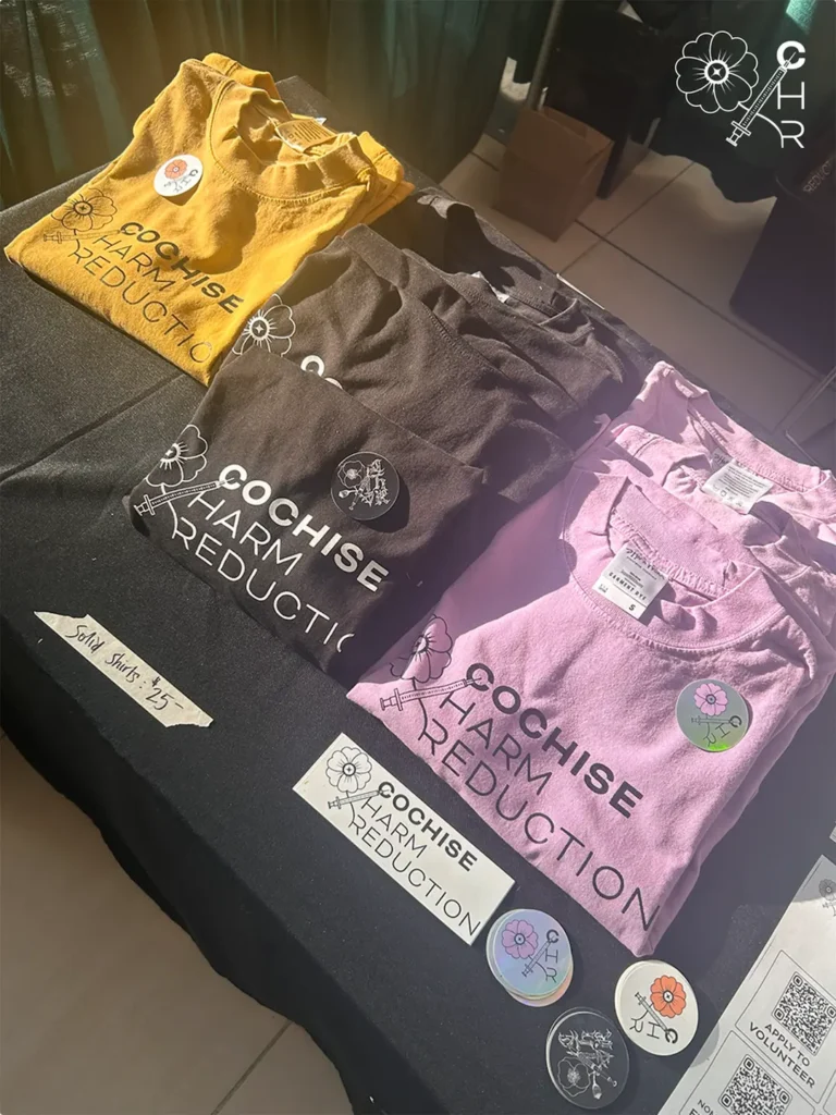 Every purchase of CHR merch goes towards supporting our life-saving services in rural Arizona; wearing harm reduction merch allows you to represent CHR, but also represent our harm reduction movement as a whole. All of our wears are conversation starters that move us closer to our mission of harm reduction being a commonly understood and supported public health initiative.